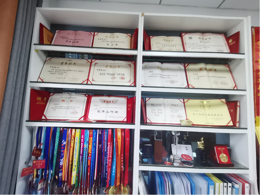 辦公室不大,墻上貼滿了機(jī)構(gòu)獲得的各種榮譽(yù),屋子的一角堆放著各種開展活動(dòng)的物資,桌子上擺放著一摞厚厚的活動(dòng)總結(jié)報(bào)告,處處向我們無聲地展示著這里忙碌而充實(shí)的工作。